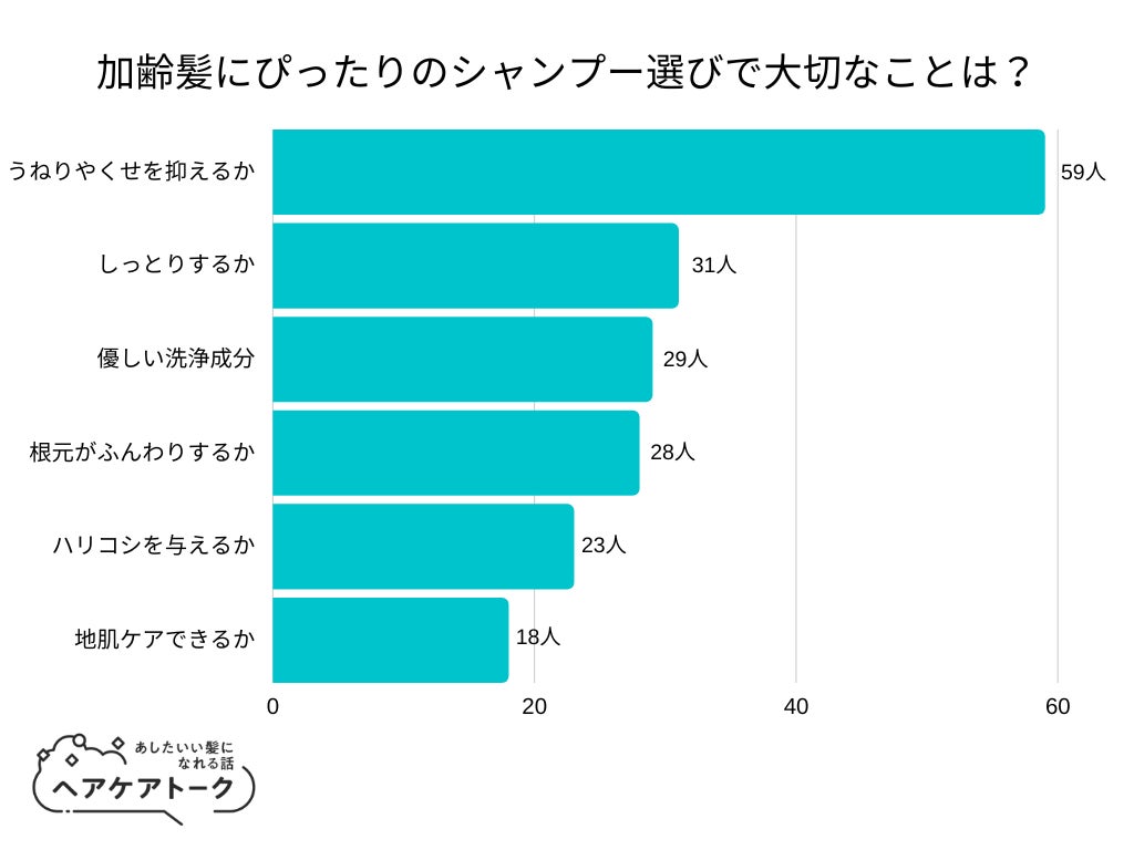 【調査レポート】加齢髪にぴったりのシャンプー選びで大切なことは?1位は「うねりやくせを …