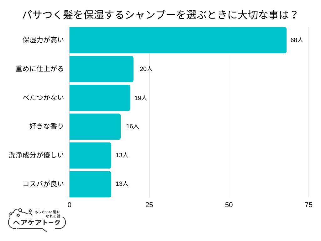 株式会社AWAのプレスリリース(2022年11月23日 07時30分) 調査レポート パサつく髪を保湿するシャンプーを選ぶときに大切な事は?1位は[保湿力が高い]で…