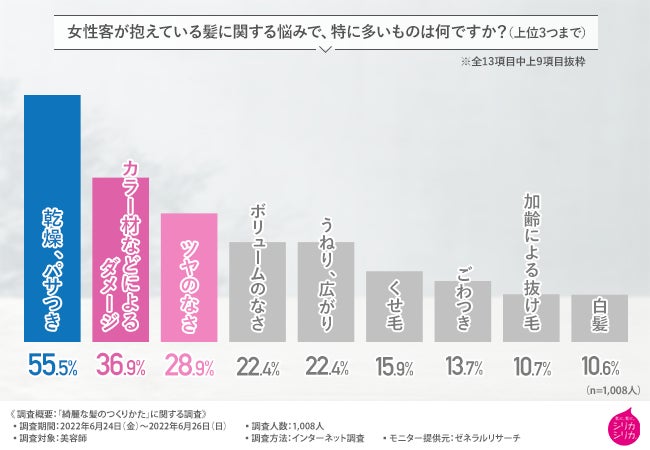 チョイスジャパン株式会社のプレスリリース(2022年9月10日 10時00分) 美容師に聞いてみた! 女性の多くが髪の乾燥、パサつきに悩んでいる!